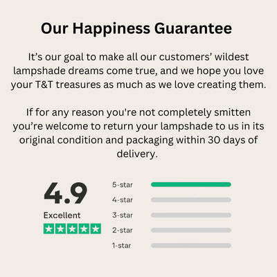 Tinker & Tallulah is a luxury lampshade brand founded and run by husband-and-wife team Rach and Liam Millband, a couple with a passion for Art Deco interiors and 1920s glamour. Since launching in 2021, the brand has firmly established itself as the destination for swishy lampshades, and now ships orders to homes and businesses all over the world. Every lampshade is designed and handmade by Rach and Liam in their Nottinghamshire studio with the highest standards of craftsmanship, attention to detail and sustainability.