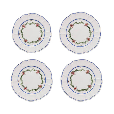 Set of 4 Dinner Plates / White ceramic with a hand-painted dark blue rim / Hand-painted floral detail / Dishwasher safe recommended at a gentle setting / Avoid leaving in water for long periods of time / Designed and crafted in Italy / Includes a recipe from Skye