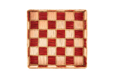This three-tone Damero Large Square Tray is woven with sustainably sourced Iraca palm leaf and dipped in 24k gold. Its checkered motif highlights the contrasting texture and color of natural, tinted and gold-dipped Iraca threads. We have been perfecting this technique over the past 6 years with our master goldsmith partners in Bogotá: it requires 27 distinct steps over 3 weeks to complete. Each tray is exclusively handcrafted to order by Magnetic Midnight's skilled artisan team in Colombia. The manual creation process takes 6 to 8 weeks. Size: 24cm x 24cm x 3cm