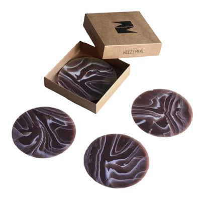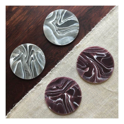 Each coaster is crafted by hand, and is totally unique in its marbling. Made from 100% recycled waste LDPE plastic in their Brighton & Hove studio.