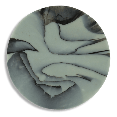 Inspired by the beautiful black veins of spalted wood. Soft pastel blue with delicate black marbling.