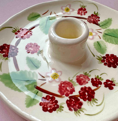Ceramic hand-painted ramble bramble serving platter, from Minnie-Mae's English garden collection.