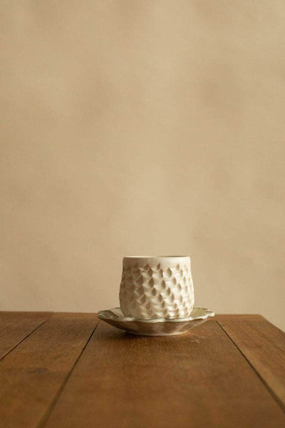 With handcrafted pattern on the surface of the Shinogi cup without handle, it is an exclusive coffee or tea cup for your home collection. Matching with the Kohyo Rinka 14cm plate to create your cup and saucer set!
