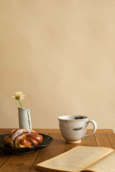 A mini Pale Grey Flower Vase is designed with embossed flower petal details and beige base, giving a rustic vibe. Perfect for your table decoration.
