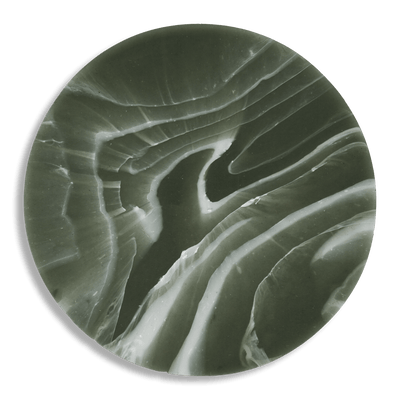 Muted translucent green with rippling wisps of white. The translucency allows you to see deep into the material, revealing the movement beneath the surface.