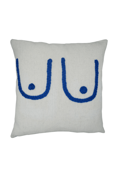 • Hand made cushion with 'boob' embroidery. Dry clean only.