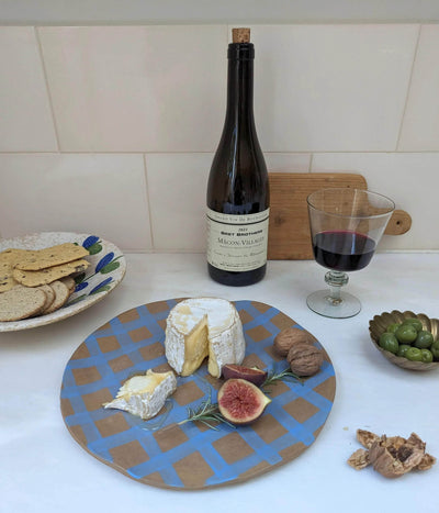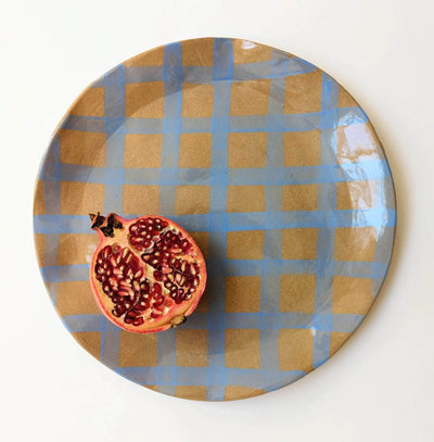 Here is a organically-shaped, irregular stoneware Blue Gingham Serving Platter ready to brighten up your dining tables for any occasion. Designed and made by Rosie Gore in her London studio.