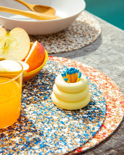 Made with a mixture of cork and colourful waste from the production of sandals.  Available in a variety of colourways. Sold individually.