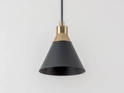 Designed with versatility and function in mind, the conical shade is perfect for spaces where direct light is needed. Petite in size, the cone pendant is designed to be hung in pairs in the kitchen or individually either side of the bed. Influenced by mid-century decor and finishes, the cone shade is topped in solid brass, which contrasts elegantly with the painted metal shade.