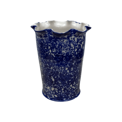 Stoneware vase with a frilly rim. Hand thrown on the wheel and altered by hand.