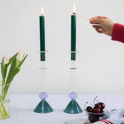 Drawing inspiration from the Art Deco era and the iconic Martini glass, this candlestick is the perfect centrepiece for any dinner party table! Vibrant in colour and fun in design, these candleholders can be mixed and matched to add style and joy to your home. Created in small batches by skilled craftsmen and women, each of these glass candlesticks has been handblown and brought to life from Issy's original designs.