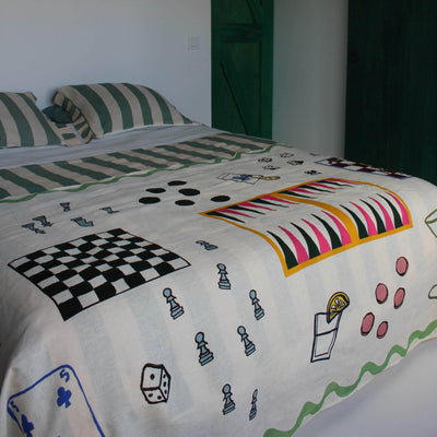 Bringing all of Amuse La Bouche's Games Motifs together, and made from 100% Linen Everyday Linen this fun and multifunctional piece can be used as a throw, tablecloth, curtain or towel.