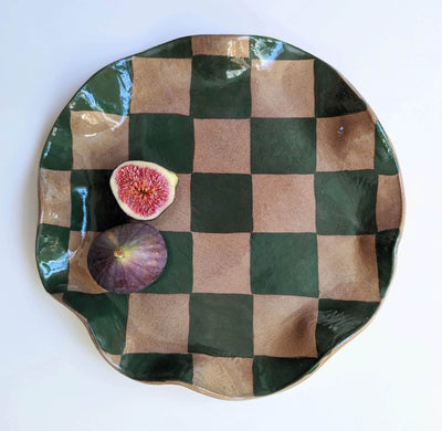Here is an organically-shaped, irregular stoneware Green Check Wavy Platter ready to brighten up your dining tables for any occasion. Designed and made by Rosie Gore in their London studio.