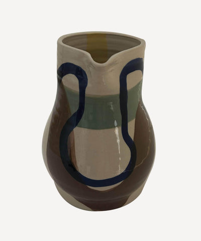A bespoke collection designed and produced in collaboration with Collagerie. The Crafted for Collagerie Jug was designed with a nod to artisanal ceramics. A traditional form with a modern twist. Working closely with the inspirational Lucinda Chambers, we developed a bespoke selection of colours in deep earthy tones. Each piece is hand thrown on the wheel, painted with coloured slips ( liquid Clay) and finished with a cobalt blue ribbon design. Meaning that no two will be the same. Each piece truly unique and intended to be held onto for a lifetime.