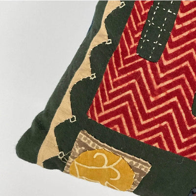 Accent mini cushion cover featuring decorative appliqué. Designed and handstitched by master artisans in Gujurat using naturally dyed and blockprinted cotton.