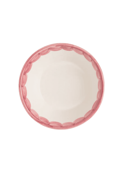 Hand-painted pink scallop bowls. With designs inspired by the 'fajalauza' ceramic tradition of southern Spain, Late Afternoon's dinnerware sets speak of sunshine, long lunches and 'sobremesa': the Spanish word for the conversation over the table after a meal with family and friends. Made in Portugal by artisans, in the long tradition of Iberian ceramics. 16cm bowl, perfect for soups, cereal, nibbles and side dishes. Hand-painted using toxin-free glazes. Full matching set of dinner and side plates available.