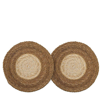 Seagrass Placemats Set of 2 - Warm Natural / White