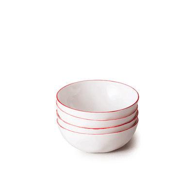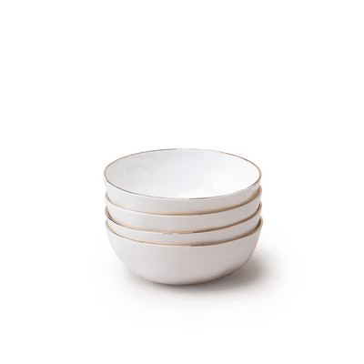 A set of four cereal bowls. Our medium sized bowl: for cereal, soup or a warming casserole. It doubles as an elegant and very useful container for fresh produce on the table. Or crisps.