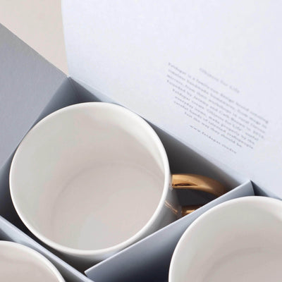 The new mug set boxes are made from beautiful, paper milled in the Lake District that is made into boxes just up the M5 from us at the foot of the Malvern hills. They are printed using a shiny gold foil that contrasts perfectly with the muted elegant tones of the paper.