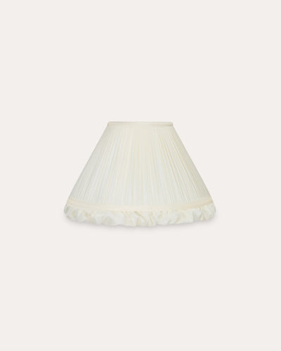 These frilly lampshades are all about grace and elegance with their pretty ruffled trim and folds of pleated silk in our iridescent Iris colourway.Being lined in white organic cotton adds a pleasing weight and means the light diffuses through the layers of fabric in a mellow, ambient way with the slightest shimmer thanks to the light-reflective silk.The table lamp design can also be used as a wall light, and it also comes as a pendant light shade for ceiling fixtures.
