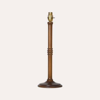 A wooden lamp base in a warming wood stain finish designed to work with any and every shade in the Imogen Pope collection in sizes 12” and 14”.Inspired by an antique brass lamp that Imogen has owned and loved for many years, she recreated it with the finest wood-turner in the UK that she could find. Impeccably made, its solid wood foundations are have a rich wood stain applied enhancing its natural timber character to achieve what we believe to be the perfect depth of tone.Dimensions: 385mm to bulb holder.Available with UK wiring only.