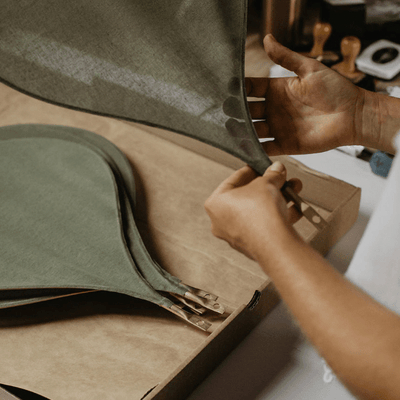 The Precious Pendant light is made in the castle of Méritein, our manufacture in Béarn (South West of France). Each petal is entirely handmade from a rattan rod on which is stretched a cotton butter cloth hand painted with a mixture of natural pigments. All the elements of the Pale suspension are sourced in France.