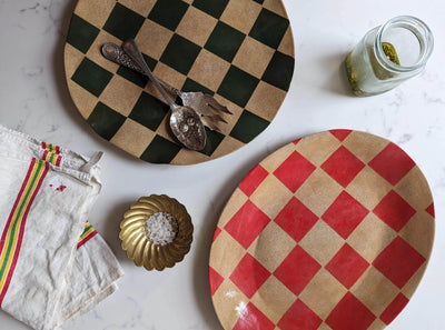 Green Check Serving Platter