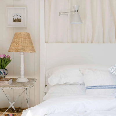 The Wave Rattan Lampshade is available in 4 sizes and with a pendant or lampshade fitting. The natural cane and rattan colour fits in effortlessly with almost any style of decor. This lampshade has a brass fixture and includes an extra insert inside the fixture.