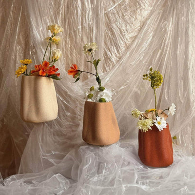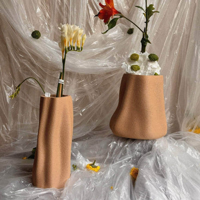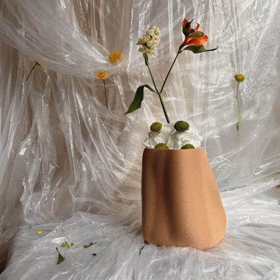 This textured vase is 3D printed using recycled PLA - a biodegradable and eco-friendly material derived from renewable resources like cornstarch or sugarcane.