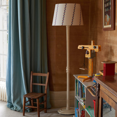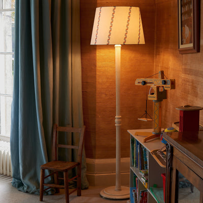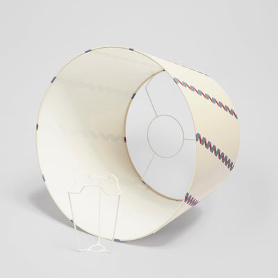 This lampshade is made of Upton Noble's wallpaper called Garlands Wider FLYING SAUCER. This design is sure to add a touch of joy to any room with its delightful patterns and vibrant, fantastic colour options.