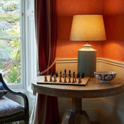 This large Empire paper shade is made of finest Belgium wallpaper with a fire-resistant lining inside. It Is completely handmade in England and the edges have a hand rolled finish. The shade comes with a shade carrier and is compatible with BC (UK) and ES (EU/USA) bulb holders. This shade is suitable for both table lamps and floor lamps.