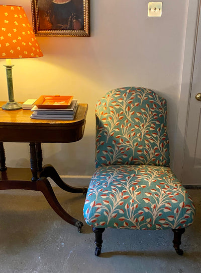 Meet Guy, and add a touch of fun to your living room. This comfortable chair is fresh out of Upton Noble's workshop and is looking for a great home. He is upholstered in a Robert Kime fabric, whose print has an intentionally worn look. With its turquoise, red, and white floral pattern, Guy brings a warm and inviting feel to any space.