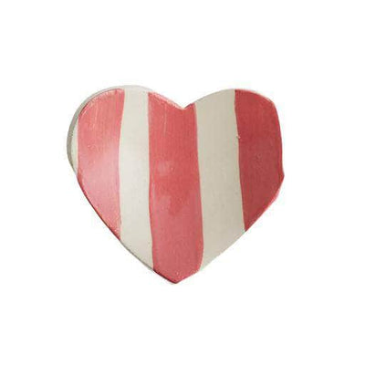 The Duci Heart stripe trinket dish is crafted from Staffordshire white stoneware. Created to hold your precious items or equally at home on the dinner table with a scoop of ice-cream. Hand built and painted with coloured slips, showing the brush strokes and the makers hand is all part of the simplicity of design and exposing the beauty of the clay material.