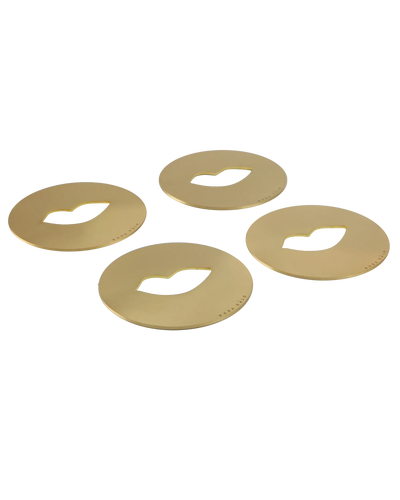 Material: Solid brass with a satin finish and a lacquer coating. All coasters have a brown velvet underlining.