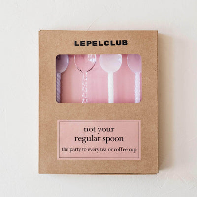 Get your party started with a set of mixed twisted glass spoons and stir things up! This charming set features four pastel spoons, made of 15 cm borosilicate glass, each uniquely handmade. To keep them in tip-top shape, we recommend handwashing. Each one is made with long-lasting, high-quality borosilicate glass, designed to retain its color and clarity for years to come.