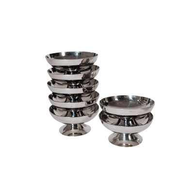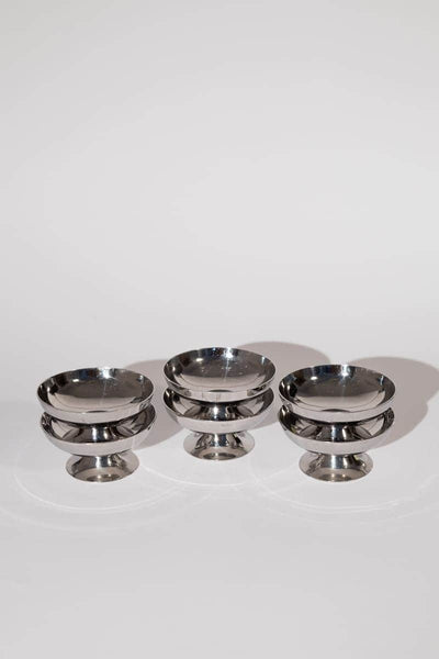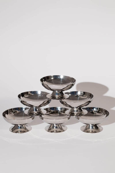 Channel classic French bistro vibes with this set of vintage dessert coupes, crafted in France from high-quality stainless steel. Featuring a short stem and a bright silver finish, these stunning coupes are perfect for serving up desserts, sorbets, or even savoury bites.