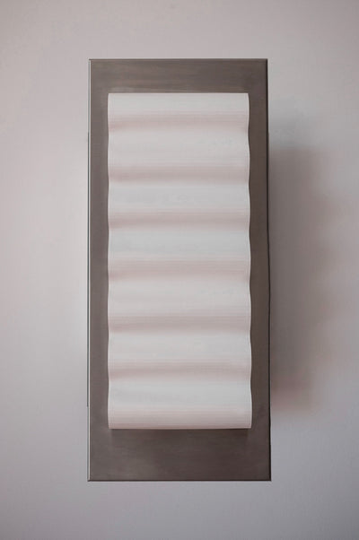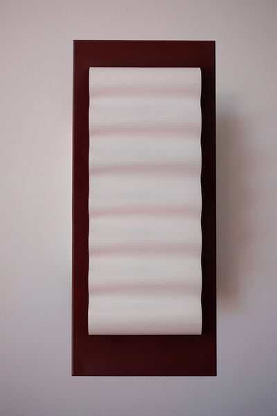 With its generous dimensions (62 x 28 x 11 cm), it transforms the wall into a canvas, blending raw or lacquered steel, polished mirror finishes, or warm wood veneer with the delicate texture of a hand-shaped paper wave.