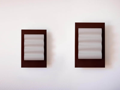 The Frame wall lights feature a simple yet sculptural design, showcasing a harmonious blend of materials: laquered steel paired with paper. The paper emits a soft, warm glow of light, creating an inviting ambiance.