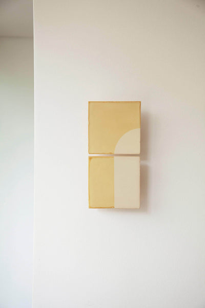 Introducing Violaine d'Harcourt Tiles ceramic wall light collection, a harmonious collaboration with Dutch designer Marianne Smink. Crafted with care in a workshop nestled north of Coimbra (Portugal) each piece in this collection boasts two hand-made tiles, screen-printed in a palette of natural hues. The subtle elegance of indirect lighting provided by a 100Lm 3000k Led bulb ensures a soft, inviting ambiance, casting a gentle, warm glow that enhances any space. As each tile is meticulously crafted by hand, every wall lamp in this collection is unique, showcasing variations in color and the endearing imperfections that define the charm of handmade artistry. This collection of 2-tiles lamps is composed of 3 series : Tiles Moon, Tiles Door and Tiles Line. Each series is available in 6 colors.