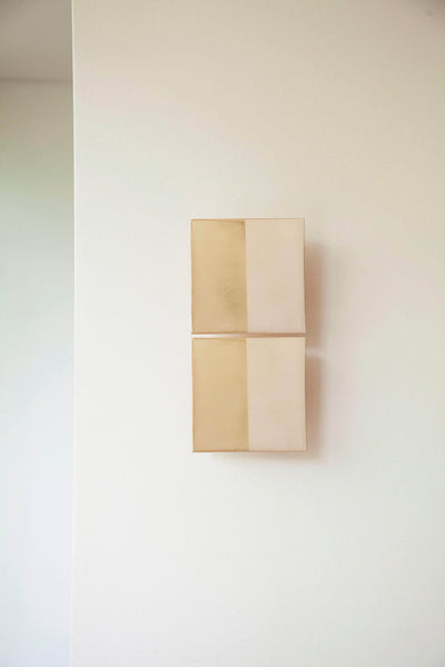 Introducing Violaine d'Harcourt Tiles ceramic wall light collection, a harmonious collaboration with Dutch designer Marianne Smink. Crafted with care in a workshop nestled north of Coimbra (Portugal) each piece in this collection boasts two hand-made tiles, screen-printed in a palette of natural hues. The subtle elegance of indirect lighting provided by a 100Lm 3000k Led bulb ensures a soft, inviting ambiance, casting a gentle, warm glow that enhances any space. As each tile is meticulously crafted by hand, every wall lamp in this collection is unique, showcasing variations in color and the endearing imperfections that define the charm of handmade artistry. This collection of 2-tiles lamps is composed of 3 series : Tiles Moon, Tiles Door and Tiles Line. Each series is available in 6 colors.