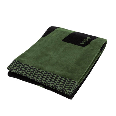 Woven in dark olive terrycloth with a sumptuous velvet finish, these beach towels add luxury to summer. Featuring our exclusive cat/match design and bordered by a thick, black-and-green half-moon patterned trim, they are striking and bold in style. They also boast attention to functionality and detail: they are distinctly two-sided, with a more absorbent underside for drying and a plush topside for lying. Perfect for lounging poolside or sprawling on the sand.