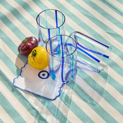 The blue and white striped tablecloth brings a breath of fresh air and the promise of summer.