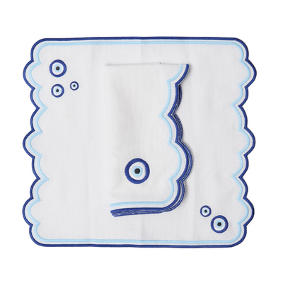 Stylish and striking, you won't find these anywhere else.  Especially designed to go with the plain blue tablecloth, add a matching napkin and coaster for an unforgettable - and very lucky - table setting!