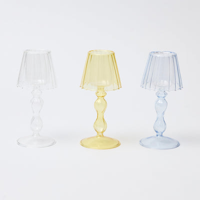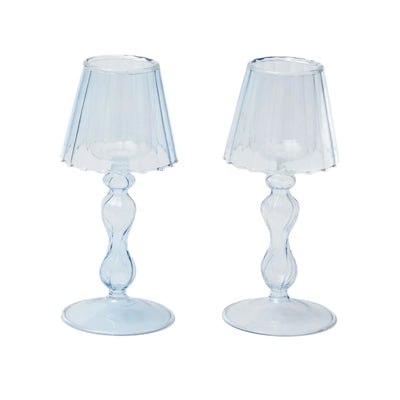 Elegant and charming, these sets of tea light lamps come as a pair, in clear, pale blue, pink or amber.  They give off a gentle light and work well both inside or outside in the garden or on the beach.