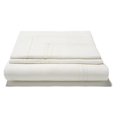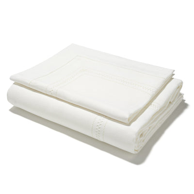 Sleep in Volga's finest pure linen range. This duvet cover is embroidered by hand with a row of diamond stitch and two rows of hemstitch drawn thread work, providing a comfortable and restful sleep experience like no other. This 100% ivory white bed linen set comes in a linen gift bag.