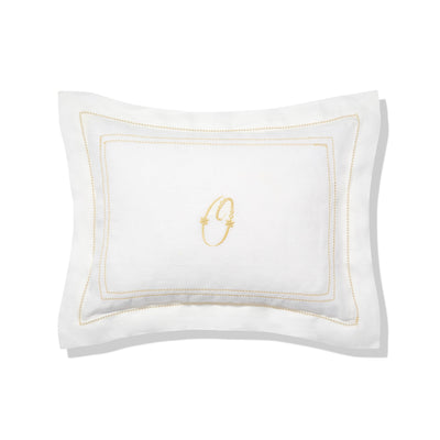 Boudoir pillow with a classic Oxford edge and embroidered with a frame of hemstitch drawn thread work. A perfect pillowcase for monogramming a name or initials.