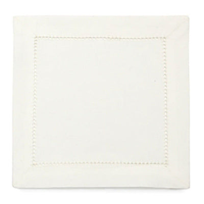 Set of 6 elegant square Cocktail Napkins in Ivory White crafted from high-quality European linen and featuring a stunning diamond stitch pattern.