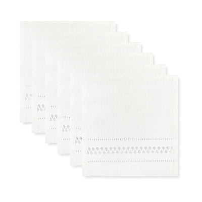 Set of 6 elegant square Cocktail Napkins in Ivory White crafted from high-quality European linen and featuring a stunning diamond stitch pattern.