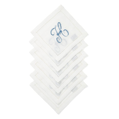 Set of 6 elegant square Cocktail Napkins in Ivory White crafted from high-quality European linen and featuring a stunning diamond stitch pattern.