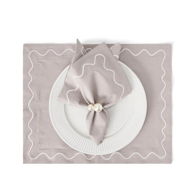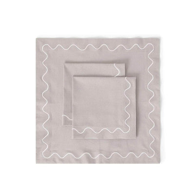 Introducing the Siena Wave Napkin from Von Norten. Crafted in elegant grey linen and detailed with intricate white embroideries, this napkin epitomizes timeless sophistication. Elevate your dining ambiance with a touch of elegance from the Von Norten Table Collection